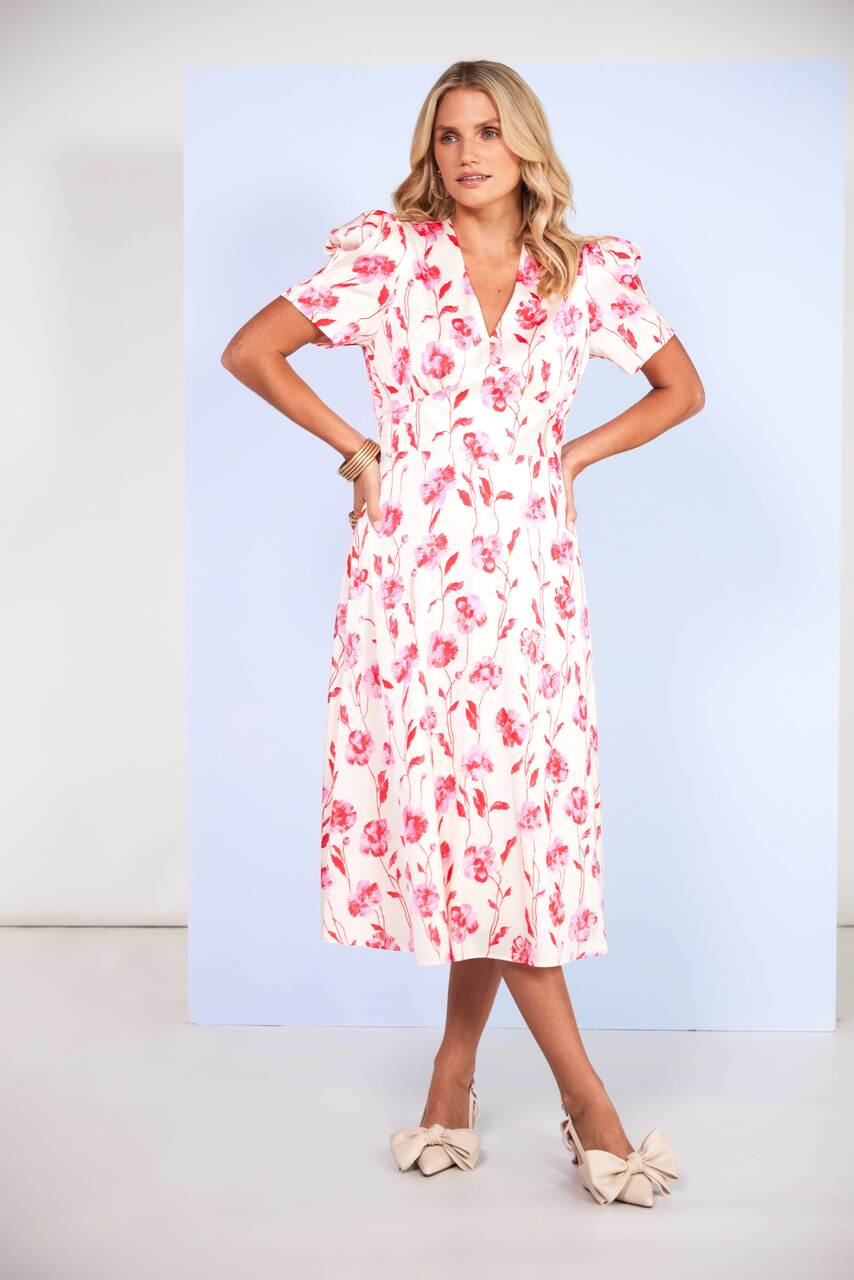 Kate Cooper KCS26168 Vee Neck Flower Print Dress