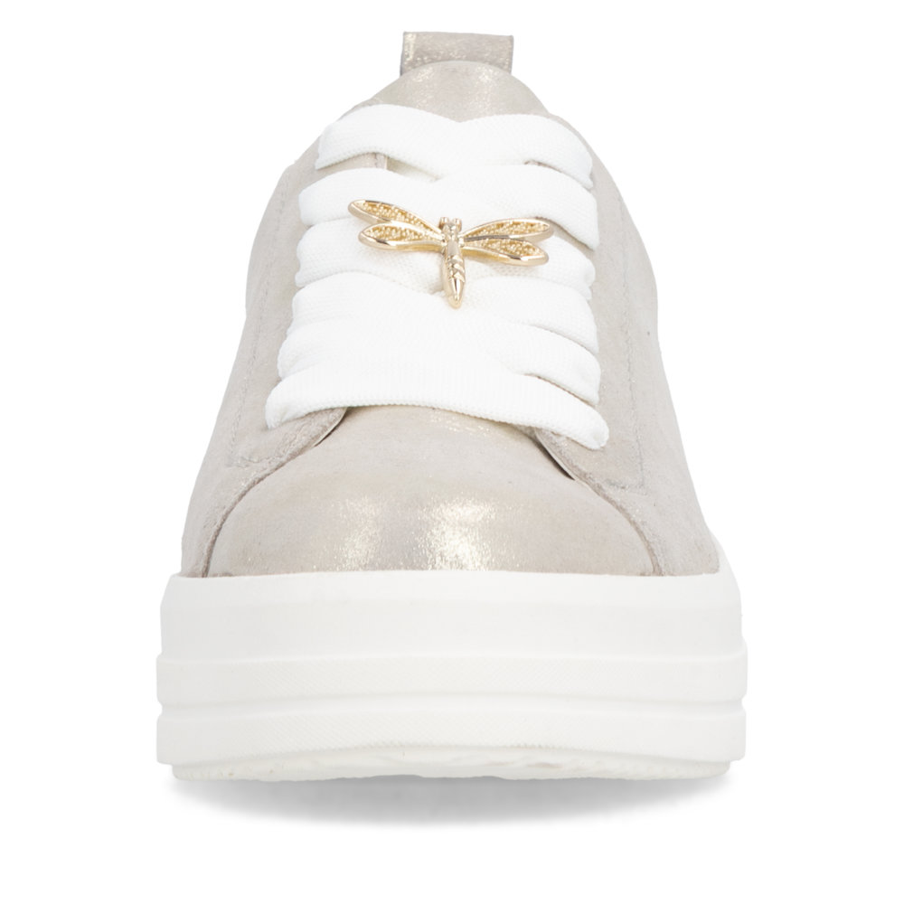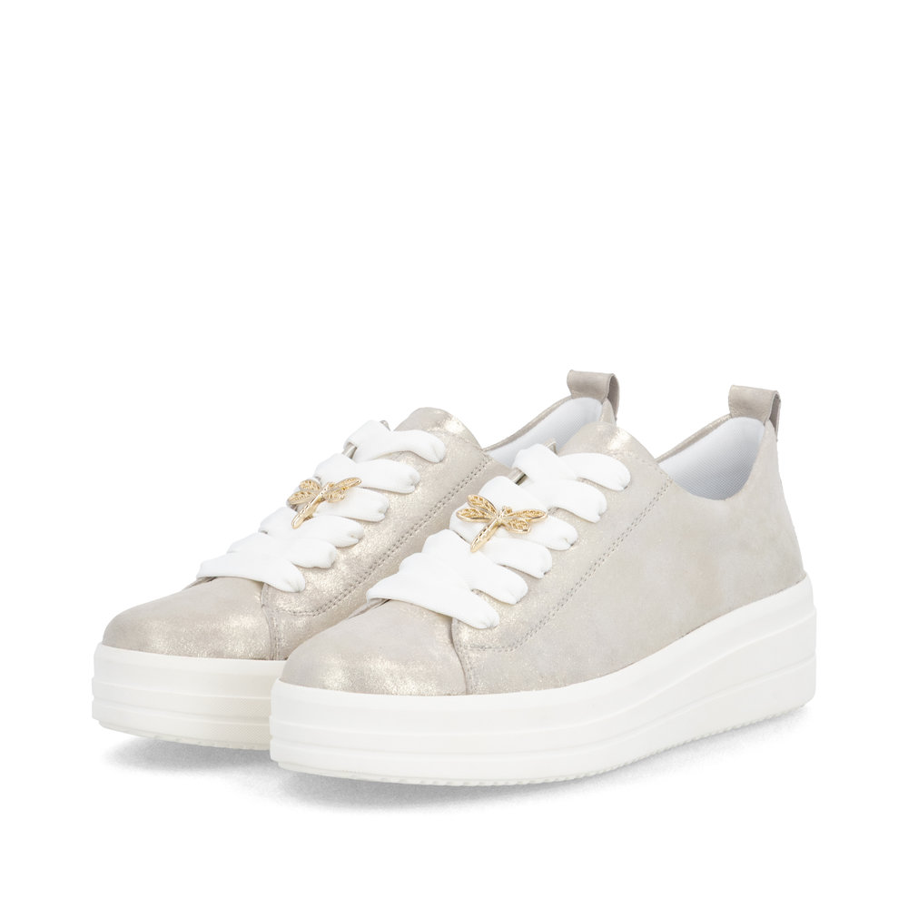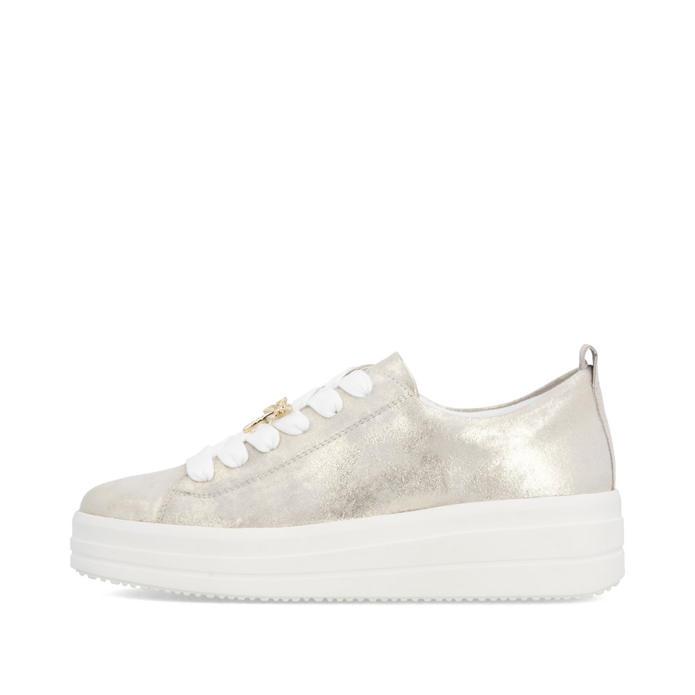Remonte D1C03-91 From 25mm - Sport sole - Heel/Wedge Schnuerer Platform More space for the feet! These golden remonte sneakers made of suede leather are casual